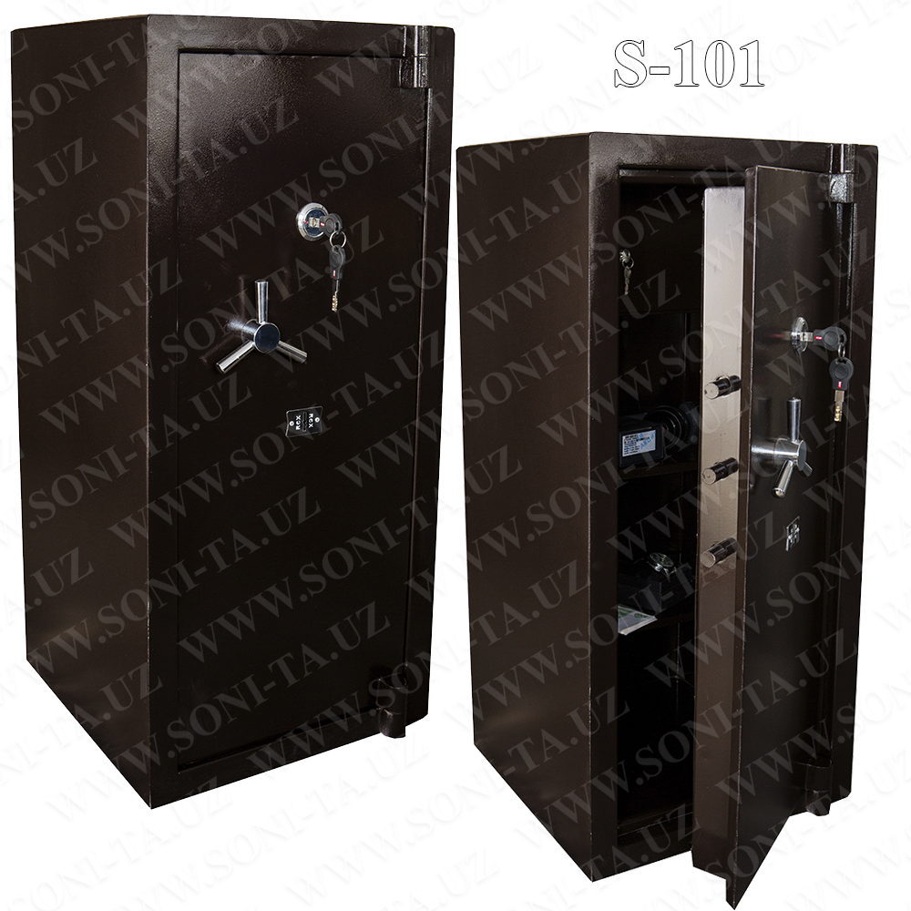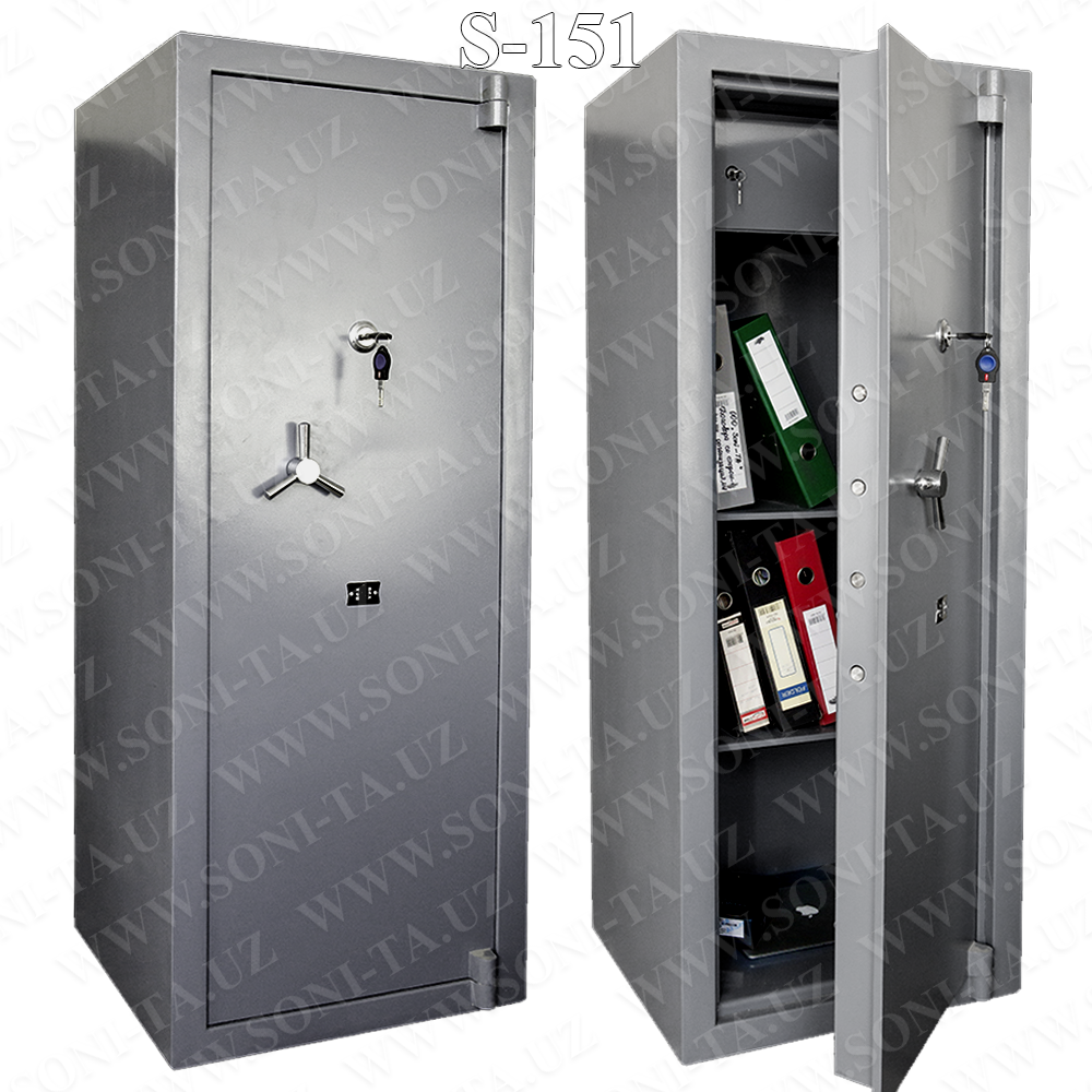 Сейфы данного типа предназначены для защиты содержимого от несанкционированного доступа и термического воздействия: высокой температуры и открытого пламени. Корпус сейфа состоит из трех слоев: внешняя стенка, слой бетона (или иной наполнитель, н-р, песок), внутреняя стенка. Наполнитель также придает достаточную тяжесть сейфу. Общая толщина стенки сейфов составляет 5-6см. Устойчивость к взлому в большей степени зависит от типа и класса используемых замков. Дверца нашего сейфа блокируется, так называемыми, пассивными ригелями, которые обеспечивают дополнительную защиту, что не дает возможности вскрыть дверь даже при срезании петель.